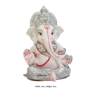 Polyresin Ganesha Idol für das Armaturenbrett und Puja , Höhe, 9 cm, Breite, 5 cm , Elegantes weißes