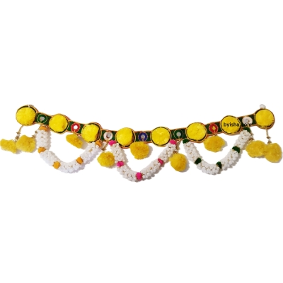 Toran élégant avec fleurs blanches et souci jaune , Nœuds colorés en jaune, rose, vert , Décoration